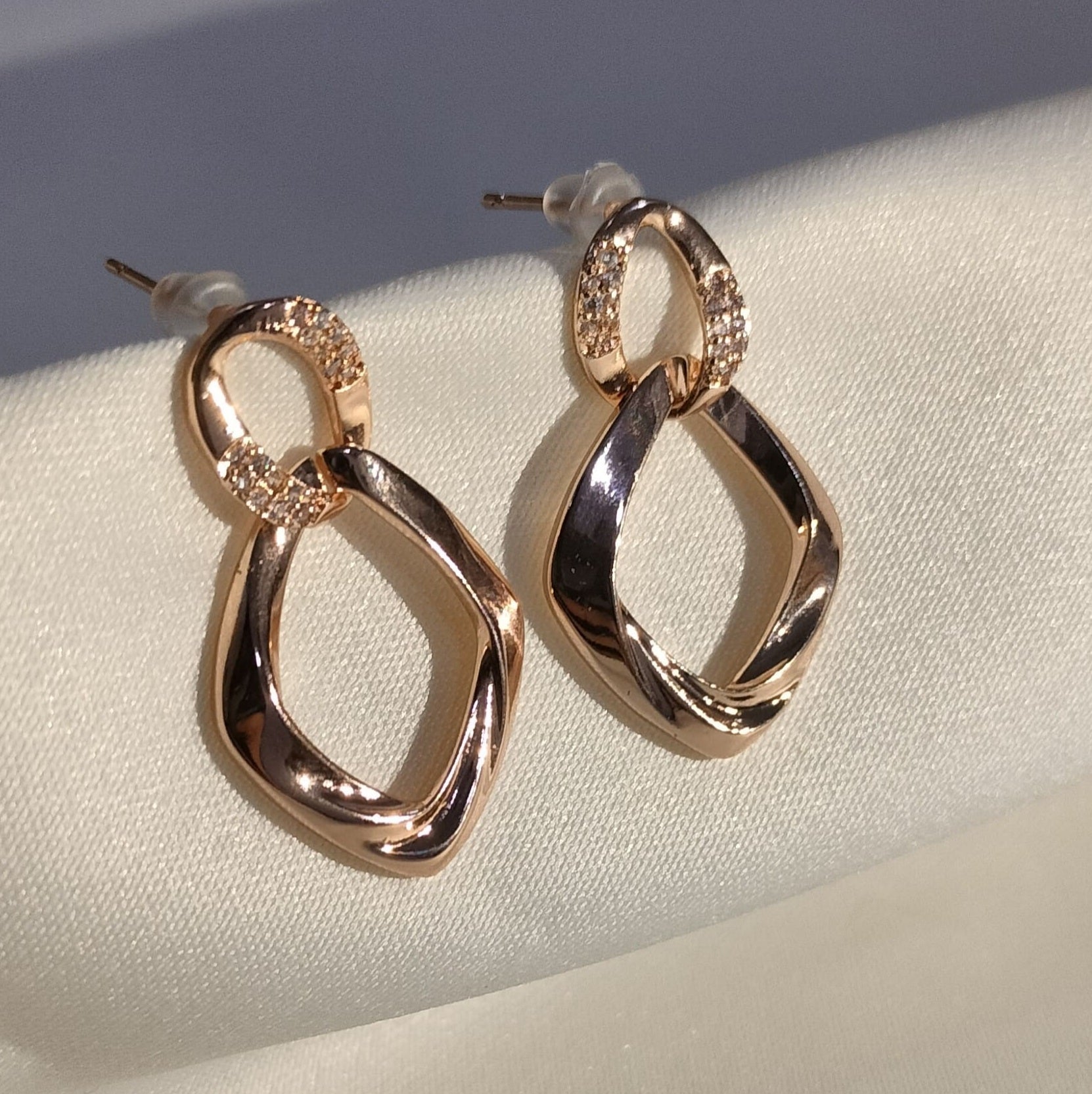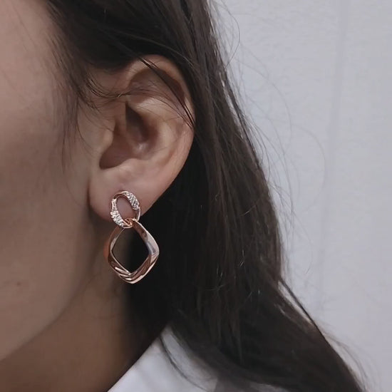 A play of light and form, the Dew Drop Earrings capture the organic beauty of glistening morning dew. Each earring features an elegant twisted stud, subtly adorned with a delicate scattering of micro-pavé crystals that catch the light. From this shimmering top, a beautifully sculpted, twisted rose gold drop descends, echoing the fluidity and gentle curves of a perfect droplet.