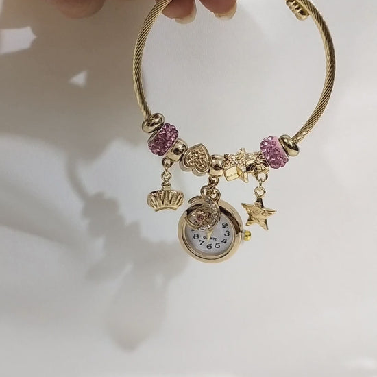Timeless elegance meets modern charm with our Pandora-inspired Starry Hours Bracelet. Designed with a unique blend of style and functionality, this bracelet doubles as a chic timepiece while dazzling with starry charms and crystal accents.